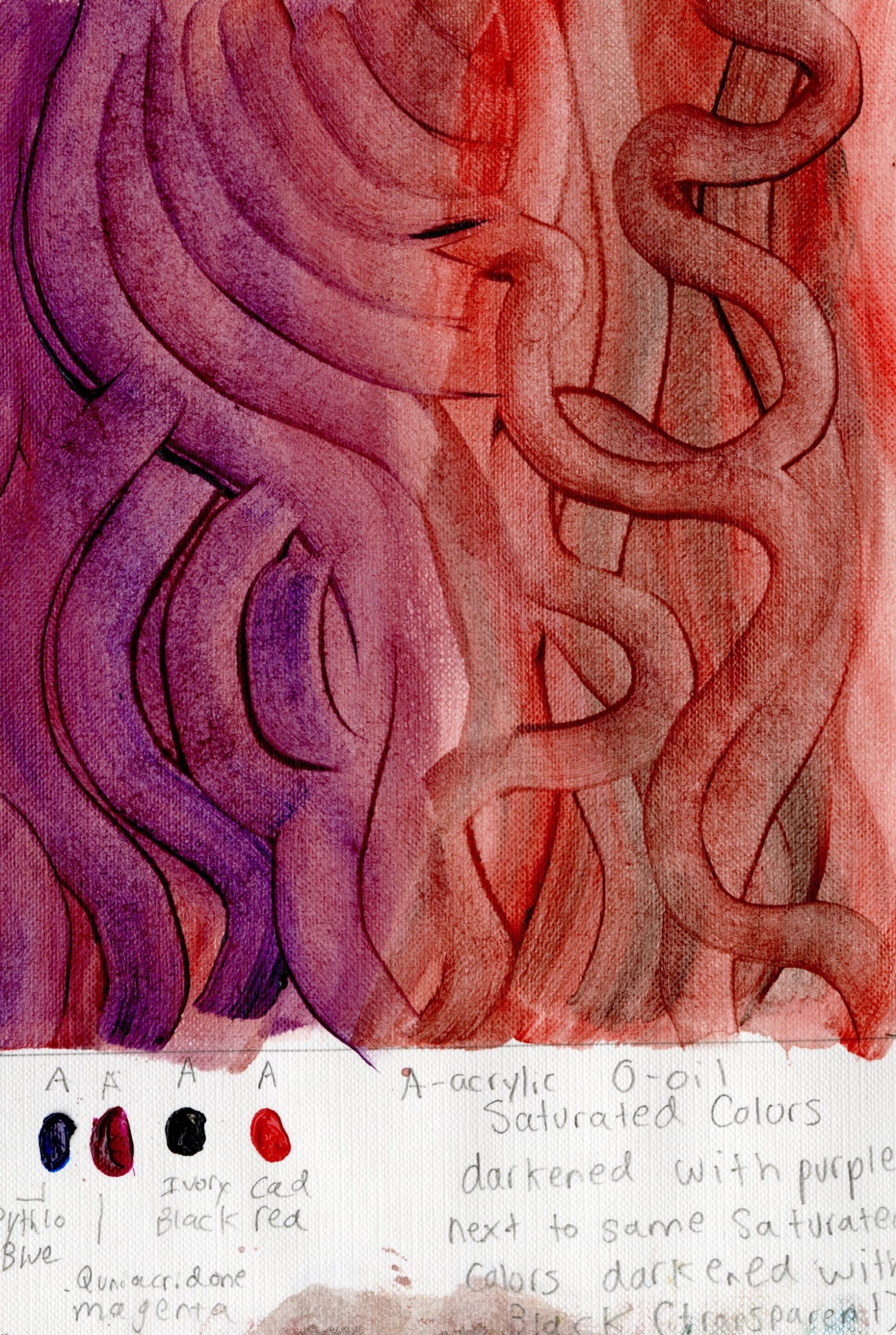 Saturated Colors Darkened with Purple next To same Saturated colors darkened with Black