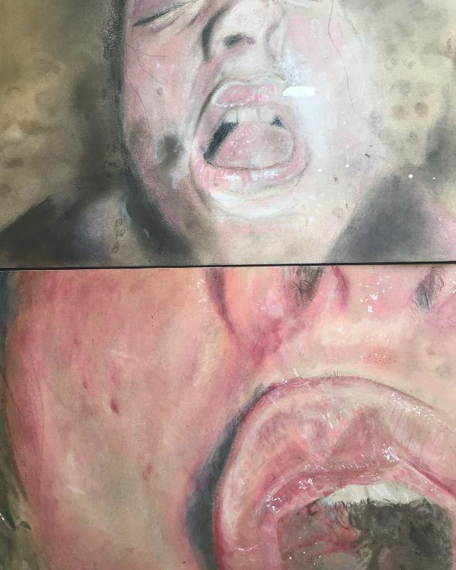 Colored pencils, water color and pastels on paper